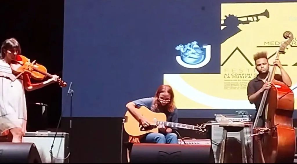 Le attese della vigilia sono state ampiamente contemplate: la chitarrista statunitense Mary Halvorson non ha deluso i tanti spettatori provenienti da diverse regioni per seguire il suo concerto al Teatro al Castello di Roccella Jonica, organizzato nell’ambito della XLIII edizione di Rumori Mediterranei. La chitarrista ha dimostrato di essere padrona del palco e di sapersi muovere con agilità e disinvoltura all’interno di un costrutto sonoro cucito su misura per la sua taglia artistica. Il modus operandi e la sua musica possiedono un tratto facilmente distinguibile, caratteristica che l’accomuna ad alcune figure chiave del chitarrismo jazz. Il pubblico ha dimostrato di gradire, confermando quanto sostengono le classifiche della prestigiosa rivista americana Down Beat, che parlano chiaro: “la Halvorson è una musicista ai vertici del jazz mondiale”. Questo primato se lo è guadagnato dopo aver vinto per sette anni la graduatoria dei chitarristi stilata dai critici della rivista considerata la bibbia del jazz dagli appassionati del genere. Nel 2023 la Halvorson si è vista assegnare anche il titolo di miglior compositrice per le musiche del ultimo suo doppio album, pubblicato negli Stati Uniti.