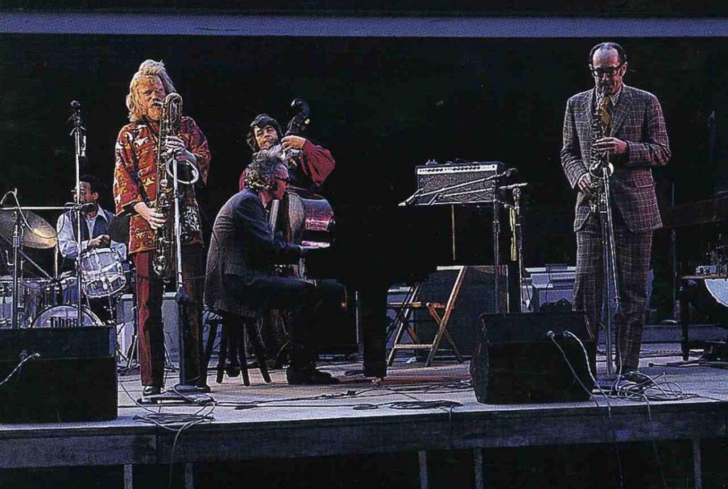 .La prima domanda sorge spontanea: chi è il vero titolare di questa impresa, Dave Brubeck (piano), Gerry Mulligan (sax baritono), Paul Desmond (sax alto)? Gli altri due, il bassista Jack Six ed il batterista Alan Dawson erano solo due gregari di lusso. «We’re all together again for the first time», è un buon live, tecnicamente impeccabile, uno di quei prodotti facili e ruffiani che danno l’idea che il jazz non sia poi un affare così complicato e per pochi eletti. Brubeck un valido musicista, che ha fatto avvicinare al jazz anche quelli che cercano nel jazz qualcosa di più masticabile e digeribile, e questo è un bene, ma non ha mai saputo cogliere a mio avviso quella che era l’anima «nera» del jazz, a differenza di altri bianchi come Chet Beker o lo stesso Gerry Mulligan. Registrato nel 1972, durante un tour europeo tra Berlino, Parigi e Rotterdam, il disco in questione, pur professionalmente e tecnicamente impeccabile, è a mio avviso è ridondante, in alcuni tratti da l’idea che ci sia competizione tra i vari protagonisti. Vi do un motivazione quantitativa, c’è uno di troppo: Brubeck e Desmond insieme erano perfetti, così come lo erano (lo furono) Mulligan e Desmond in altre circostanze, tutte e tre insieme eccedono. È come se volessero dimostrare, anche inconsciamente, di essere uno più determinante dell’altro nell’economia del progetto.