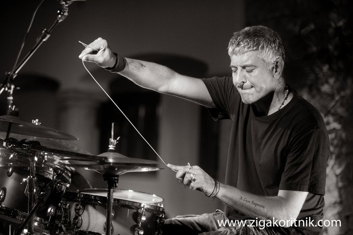 R Essendo tutt’ora ‘studente’ e grande curioso, cerco quasi sempre di essere al corrente di ciò che accade; premesso questo, le mie fonti di ispirazione naturalmente – oltre i grandi maestri del mio strumento – sono stati Oxley, Martin, Favre, Williams, Motian, Romano, Vesala, DeJohnette che ancora inseguo: la fonte è ancora lunga. E poi i miei “eroi” italiani Jannaccone, Raffone, Centazzo, Monico e mi fermo qui: con molti di loro ho già avuto l’opportunità,spero presto di farlo anche con gli altri e sono molti, sarebbe un grande piacere e un’altra opportunità di approfondire…
