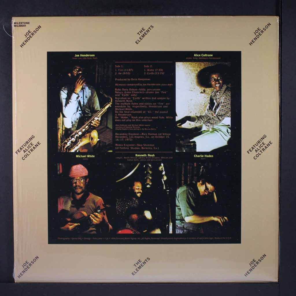 Calandosi nell’atmosfera di quegli anni, siamo ne l 1973, anno in cui Joe Henderson e Alice McLeod vedova di Coltrane si unirono in questo morganatico artistico, si potrebbe affermare, senza tema di smentita, che «The Elements» sia un album superlativo, ovviamente non è per tutti: per penetrarne l’essenza bisogna essersi già lentamente «mitridatizzati» ascoltando musica free form a vario titolo. Si consideri che, all’interno di questa piattaforma sonora multietnica, tutti i legami fra i musicisti sono volutamente spezzati, non esiste interplay, ma un rudimentale byplay, ossia un veloce passaggio di consegne dall’uno all’altra e viceversa: ogni singolo strumentista esprime una sorta di devanagari interiore teso a creare un universo dilatato ed una dimensione primordiale che guarda verso i quattro punti cardinali dello scibile sonoro, in cui il vernacolo jazzistico è accerchiato dai suoni, dai rumori, dalle voci, dai languori e dai ritmi del Sud del mondo. Questa è la cosiddetta «quarta via» di cui parlava indirettamente Edgar Varese, una tipologia di approccio collettivo che giocò a tutto vantaggio di Alice Coltrane, la quale era comodamente a suo agio in quelle terre di confine. Dal canto suo, Henderson, pur avendo un imprinting più tradizionale, si mostrò comunque alquanto adattivo.