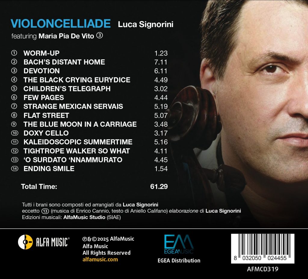 I brani inclusi nel CD, come l’adattamento strumentale di «’O surdato ’nnammurato» e le libere rielaborazioni di standard jazz quali «Blue Moon» e «Summertime», offrono una riflessione profonda sulla reinterpretazione musicale, un aspetto centrale nell’estetica di «Violoncelliade». Le composizioni, che vanno dalla spontanea sorgività di «Flat Street» alla complessità emotiva di «Children’s Old Telegraph», non soltanto eseguono, ma rielaborano il mood con un’intensità e un’immediatezza che coinvolgono l’ascoltatore al primo impatto. Significativa, infine, è anche la dimensione sociale del progetto. La collaborazione con figure del mondo filosofico, come Giuseppe Ferraro, e incontri interattivi come quello con Silvio Perrella, dimostrano come «Violoncelliade» abbia inteso non solo accentuare la propria presenza musicale, ma anche partecipare attivamente alla vita culturale di Napoli. Tali eventi, in particolare quelli che affrontano temi sociali,, come la sensibilizzazione riguardo alla strage di bufale nel casertano, attestano un impegno civico che affianca l’arte alla responsabilità sociale, offrendo così un modello di progettualità interdisciplinare nel contesto contemporaneo.