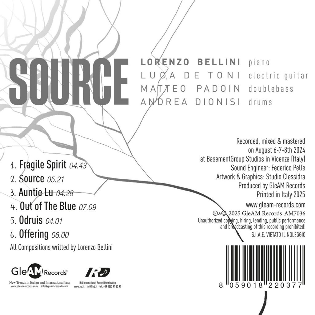 Con il suo secondo album da band-leader, «Source», il pianista-compositore Lorenzo Bellini si conferma come una delle voci più brillanti e consapevoli della nuova generazione jazzistica italiana. Pubblicato dalla GleAM Records di Angelo Mastronardi, il disco si caratterizza come un lavoro stratificato e densamente significativo, intersecando esperienze transatlantiche, lirismo cameristico e uno spiccato senso della forma compositiva.
