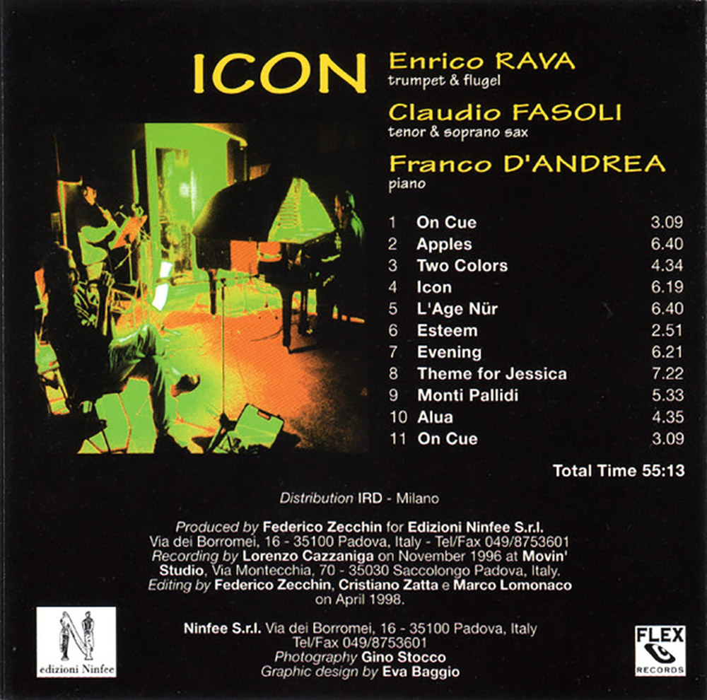 L’esperienza in trio Rava, Fasoli e D’Andrea attesta un esempio paradigmatico di come differenti componenti timbriche ed armoniche possano avvitarsi in un interscambio fitto e sinuoso al contempo. La loro capacità di comunicare attraverso un preciso codice espressivo, unita ad un’acclarata comprensione dell’ortografia jazzistica, sancisce un lavoro che apporta un contributo significativo al panorama del jazz dell’ultimo scorcio del Novecento. Rava, con il suo inconfondibile lirismo, imprime un’impronta distintiva, mentre Fasoli, con la sua tecnica mercuriale, dialoga con il trombettista in un’alternanza di virtuosismi e momenti di penetrante introspezione. Dal canto sui D’Andrea, esegeta dell’armonia, cuce una velatura acustica filtrante, presidiata da un solido substrato ritmico. In definitiva, «Icon» promulga un trattato jazzistico di ragguardevole pregnanza, un’esemplare dimostrazione di come il jazz possa evolversi e rinnovarsi, pur mantenendo intatta la sua nemesi espressiva. Di certo, l’album, ancora attualissimo, meriterebbe un posto di rilievo nella vetrina espositiva dei tre musicisti e nel panorama del jazz contemporaneo. Ciononostante il disco risulta introvabile nella sua veste originale. Si consiglia a qualche produttore discografico di acquisirne i diritti, rimasterizzarlo e farne un’edizione in vinile.