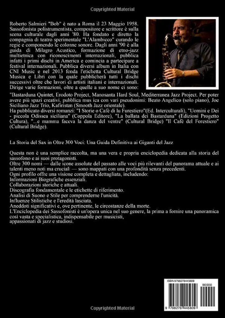 «Enciclopedia dei Sassofonisti» si presenta dunque come uno strumento di studio e consultazione, ma anche come un viaggio narrativo che permette di attraversare la storia del sassofono nel jazz attraverso le sue voci più rappresentative. La cura con cui Salmieri costruisce ogni profilo, la varietà delle informazioni raccolte e la capacità di far emergere la specificità di ciascun interprete rendono il volume un riferimento prezioso per musicologi, studenti, appassionati e per chiunque desideri comprendere la ricchezza di uno strumento che ha segnato in modo decisivo l’evoluzione del linguaggio jazzistico.
