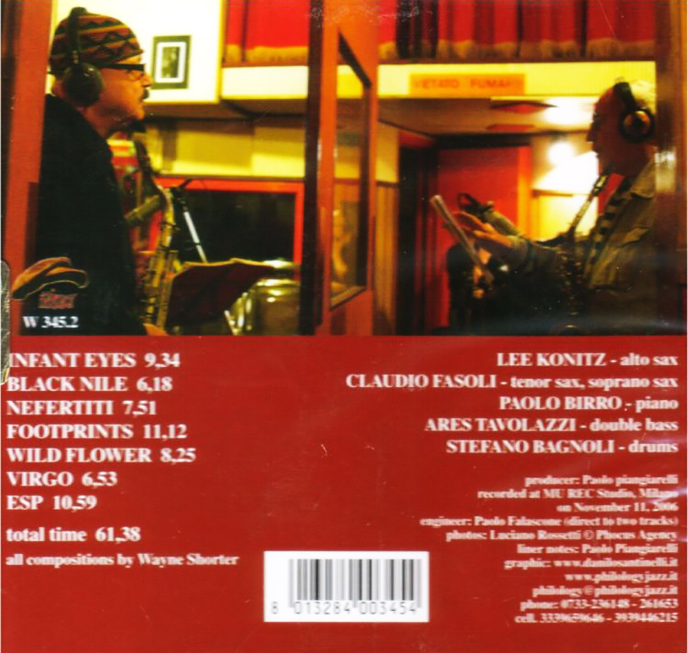 L’incontro fra Lee Konitz e Claudio Fasoli, documentato in «Infant Eyes (The Music Of Wayne Shorter)», non nasce come operazione tributaristica né come esercizio di stile, ma quale riflessione condivisa su un repertorio che, più di altri, sollecita una presa di posizione estetica. La musica di Wayne Shorter, con il suo equilibrio instabile fra forma e apertura, fra enunciazione tematica e ambiguità armonica, offre il terreno ideale per due personalità che hanno sempre concepito il jazz come pratica del pensiero prima ancora che come linguaggio codificato. In questa pagina discografica, registrata nel novembre 2006, presso il Mu Rec Studio, per l’etichetta Philology, l’interazione fra i due sassofoni non procede per contrapposizione generazionale, ma si dipana in virtù di ascolto reciproco, di costante ricalibrazione del ruolo individuale all’interno del quadro collettivo.
