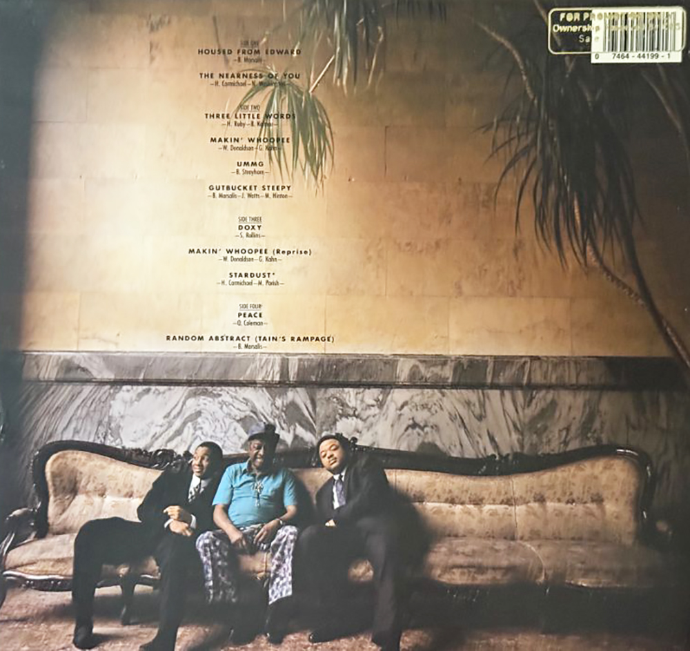 «Housed from Edward» da la stura all’album con frammenti di conversazione in studio, quasi a sottolineare una dimensione ludica che solca l’intero lavoro. L’ossatura formale sembra quella di un blues in dodici battute, e tuttavia Marsalis altera l’accentazione spostando l’enfasi metrica dal secondo movimento al primo e al terzo, alternando note singole a rapide sequenze di semicrome ora swingate ora diritte. Hinton mantiene una linea di walking bass incrollabile, mentre Watts accentua gli snodi con colpi che amplificano l’energia senza frantumare la struttura. L’assolo del contrabbasso assume i contorni di un confronto serrato con la batteria, mentre il ritorno del sax si manifesta con salti intervallari arditi e figurazioni minute che giocano sul contrasto fra ampiezza e brevità. L’ironia non cancella la disciplina formale, ma la rafforza. Con «The Nearness Of You» il trio opta per una lettura lineare del celebre standard. Marsalis espone la melodia sopra un arco del contrabbasso che ne sostiene l’andamento con sonorità calde, poi lascia che la batteria inserisca leggere vibrazioni di piatto. L’improvvisazione procede per variazioni ritmiche, con modulazioni di intensità e timbro che mostrano un controllo accurato del registro grave e medio. Si avverte una riflessione sulla tradizione della ballad tenorile, pur senza indulgere in manierismi. «Three Little Words» viene preceduta da un’incertezza iniziale che tradisce la spontaneità della sessione. Una volta avviato, il torrente sonoro scorre con velocità sostenuta, quasi parkeriana; Hinton ricorre allo slap con vivacità teatrale, delineando la linea melodica e il sostegno ritmico simultaneamente. Il rientro del sax si posiziona su un crinale di rischio controllato, come se l’andamento potesse deragliare e tuttavia restasse coeso grazie alla chiarezza delle cadenze. Nel trattamento di «U.M.M.G.» di Billy Strayhorn il tempo rasenta la soglia della vertigine. Watts imprime accelerazioni improvvise, con rullate e aperture di piatti che sollecitano il sax a una risposta altrettanto energica, mentre il contrabbasso garantisce stabilità armonica. Il finale assume contorni quasi latino-americani per poi alludere a libertà melodiche che richiamano Ornette Coleman, pur mantenendo un saldo riferimento alla linea tematica.